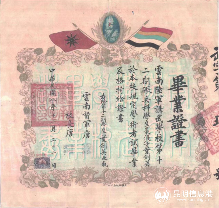 該畢業(yè)證書(shū),是葉劍英元帥在云南陸軍講武堂學(xué)習(xí)、畢業(yè)的重要?dú)v史文物,也是云南陸軍講武堂歷史博物館征集到的第一份云南陸軍講武堂畢業(yè)證書(shū),