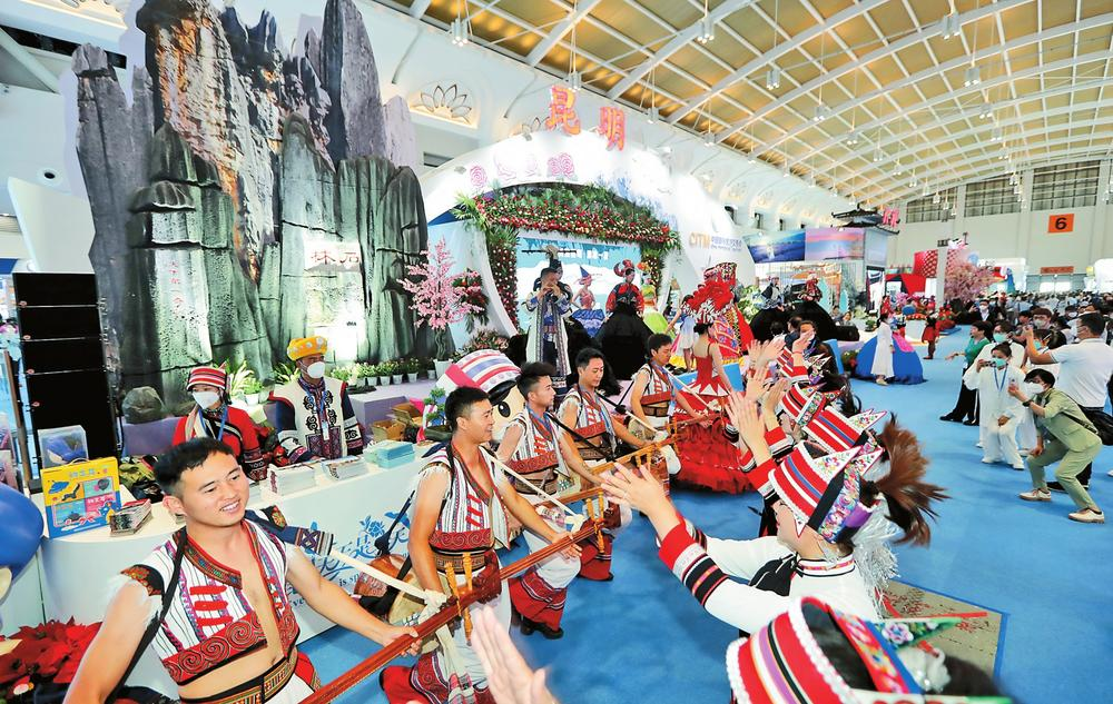 7月22日,2022中國(guó)國(guó)際旅游交易會(huì)在昆明開(kāi)幕,云南文化旅游主題形象館引人關(guān)注。
