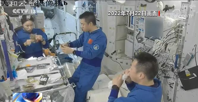 今天的新聞中的一件大事兒就是我們的問天實(shí)驗(yàn)艙任務(wù)組織完成了發(fā)射前的系統(tǒng)間全區(qū)合練,這也意味著各項(xiàng)準(zhǔn)備工作已經(jīng)妥當(dāng),就待擇機(jī)發(fā)射。而從地面到太空,從6月5號(hào)神舟十四號(hào)發(fā)射成功算起,我們的三名航天員也已經(jīng)在軌工作生活了47天。今天節(jié)目開始,我們先來看看他們今天的生活片段,看看他們都在忙些什么。