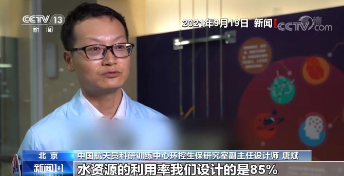 中國航天員科研訓(xùn)練中心環(huán)控生保研究室副主任設(shè)計(jì)師 唐斌:水資源的利用率我們?cè)O(shè)計(jì)的是85%,現(xiàn)在是完全滿足我們的設(shè)計(jì)指標(biāo),到后面現(xiàn)在一直使用的是再生水,對(duì)艙內(nèi)的氣體凈化也不需要消耗一些消耗品,它都是一個(gè)循環(huán)利用的過程,這樣就能夠保證長期的一個(gè)載人飛行任務(wù)。