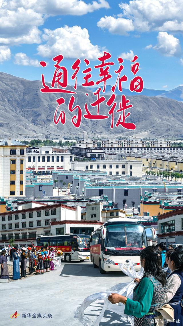 一陣陣激昂的藏戲鼓聲、一聲聲“歡迎到家”的美好祝福,當(dāng)?shù)厝罕娛峙e象征五谷豐登的“切瑪盒”,逐一獻(xiàn)上哈達(dá),迎接新鄰居。