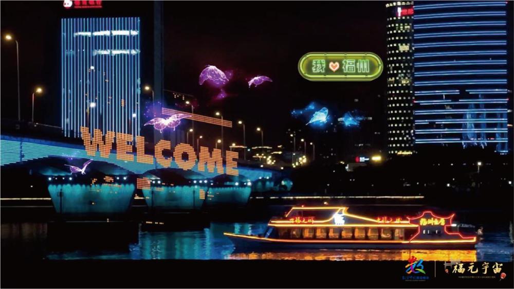 數(shù)字交互之夜是以“福元宇宙是基于人人都可構(gòu)筑的愿景”為核心思想,選擇福州閩江兩岸以及會(huì)展島的特色三處典型區(qū)域,展開的一次“R真實(shí)場(chǎng)景+AR技術(shù)”數(shù)字燈光秀。數(shù)字交互之夜還融入中國(guó)文化、科技及“龍、魚”、展會(huì)吉祥物等形象,以構(gòu)建數(shù)字世界下的人類新家園為核心,秉承大氣、精彩、可持續(xù)為創(chuàng)作原則,立足展現(xiàn)數(shù)字中國(guó)的科技魅力。