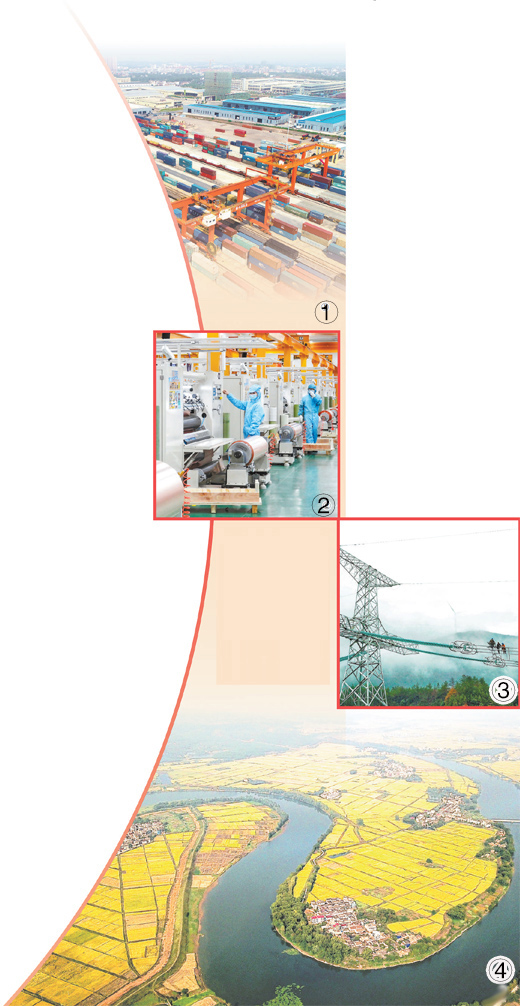 圖①:贛州國(guó)際陸港一片繁忙景象,港口開(kāi)行的中歐(亞)班列覆蓋中亞五國(guó)及歐洲20多個(gè)國(guó)家。鄒忠輝/攝