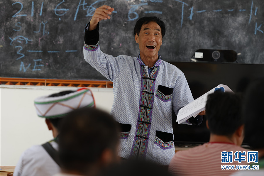 趙科老師正在教村民唱傈僳族民歌。新華網(wǎng) 丁凝 攝