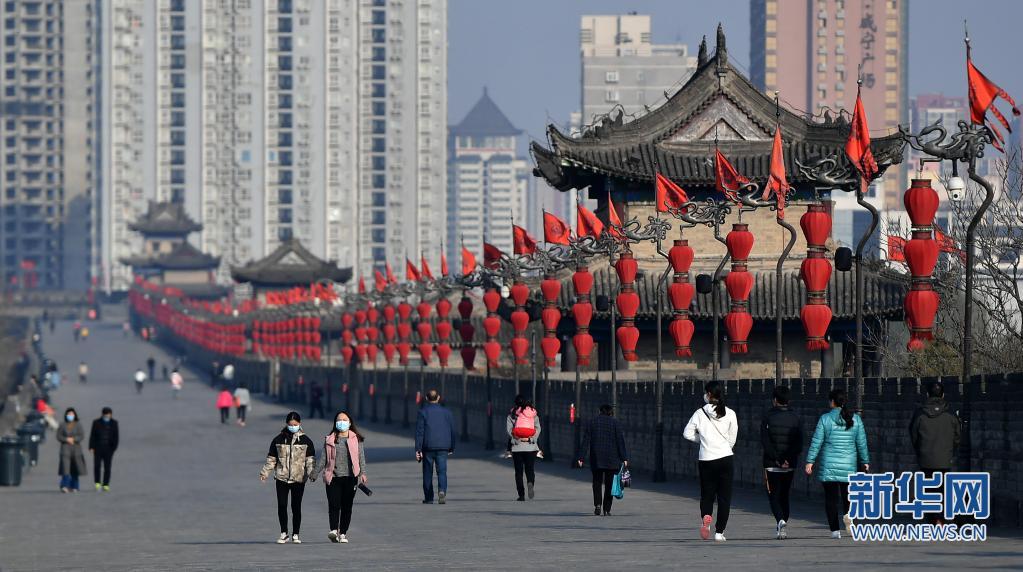 游客在西安城墻瀏覽。新華社記者 劉瀟 攝