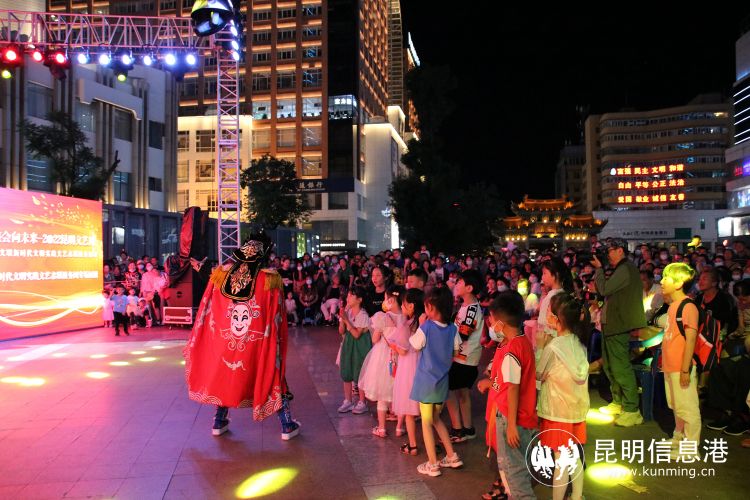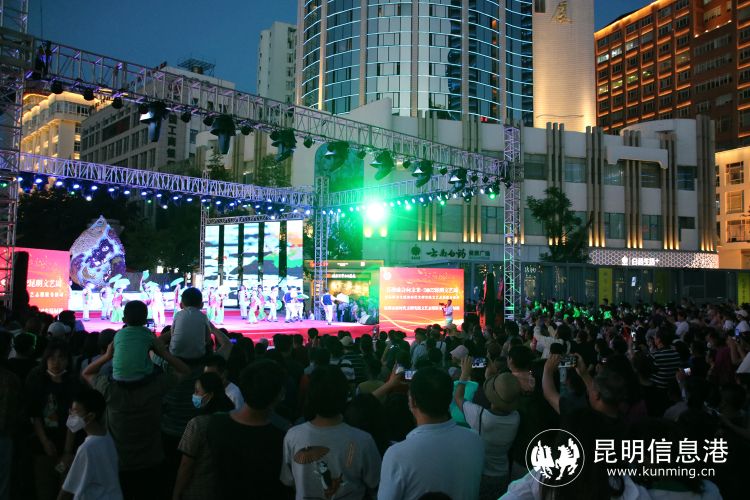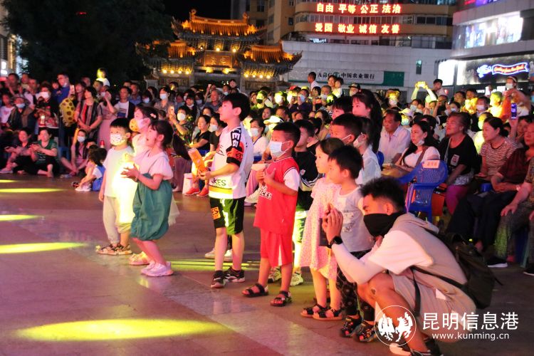 昆明信息港訊 記者甘凌菲 “滇池清、昆明興,滇池凈、昆明美”,隨著熱鬧的歌舞聲,7月25日晚,2022昆明文藝周系列演出,昆明市新時(shí)代文明實(shí)踐文藝志愿服務(wù)團(tuán)專場(chǎng)展演在南屏街廣場(chǎng)拉開帷幕,活動(dòng)雖然是在周一的晚上,但是現(xiàn)場(chǎng)仍舊氣氛熱烈,聚集了很多觀眾前來觀看演出。