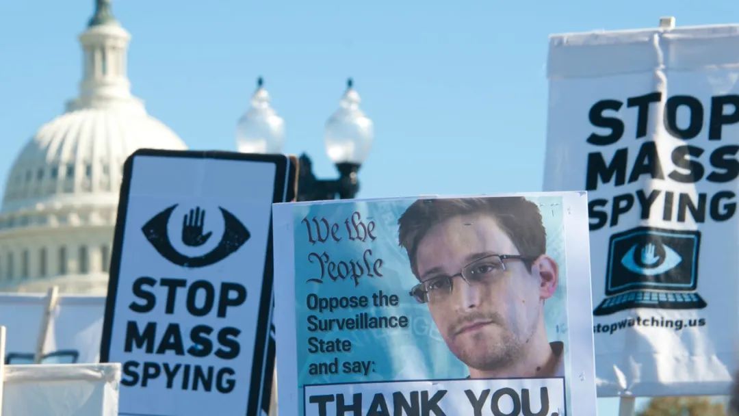 ▲ 2013年10月,民眾聚集在白宮前,手舉“謝謝你,斯諾登”“停止大規(guī)模監(jiān)視”的標(biāo)語,感謝斯諾登曝光美國多個(gè)秘密情報(bào)監(jiān)視項(xiàng)目,要求政府立刻停止此類行為。
