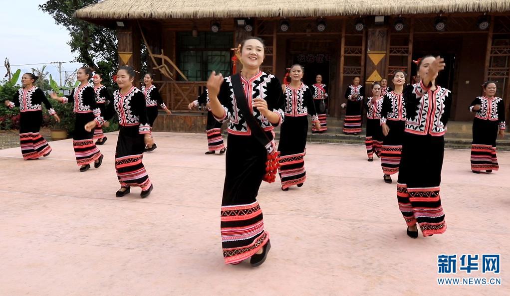 班利村群眾表演隊(duì)在表演拉祜族擺舞。新華網(wǎng) 李浩 攝