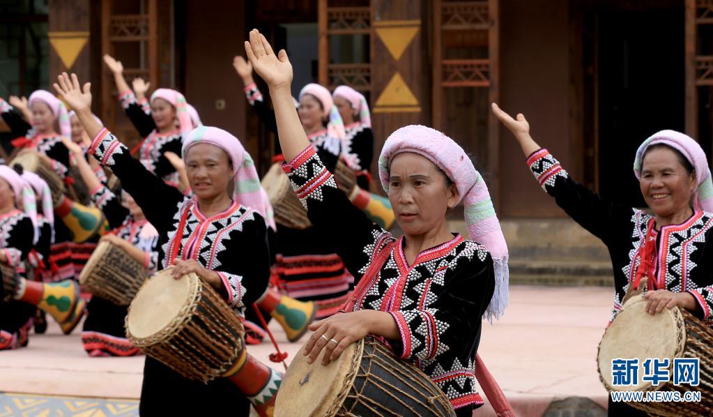 班利村群眾表演隊(duì)在表演拉祜族鼓舞。新華網(wǎng) 李浩 攝