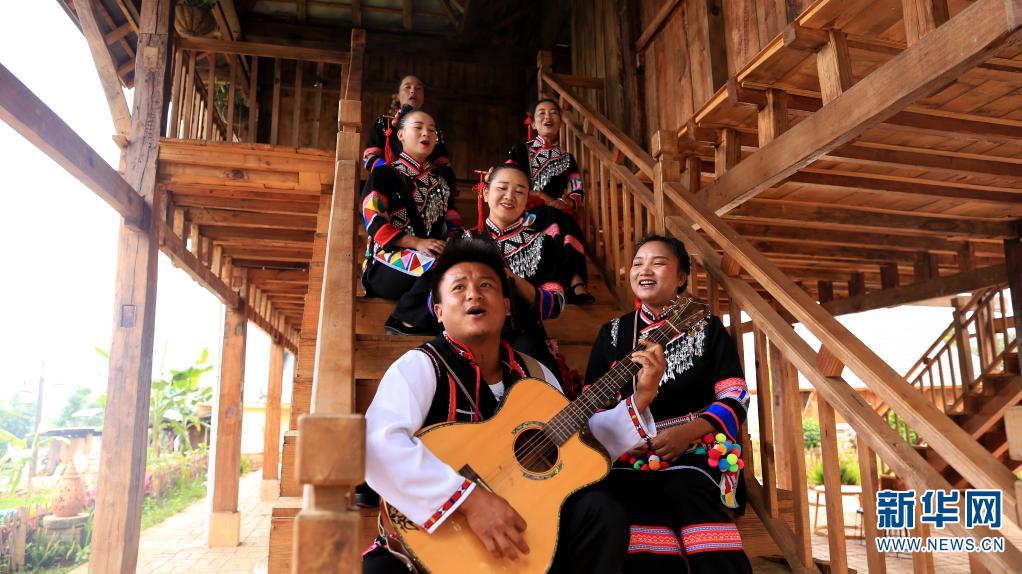 班利村群眾表演隊(duì)在演唱《最美麗的拉祜山》。新華網(wǎng) 李浩 攝