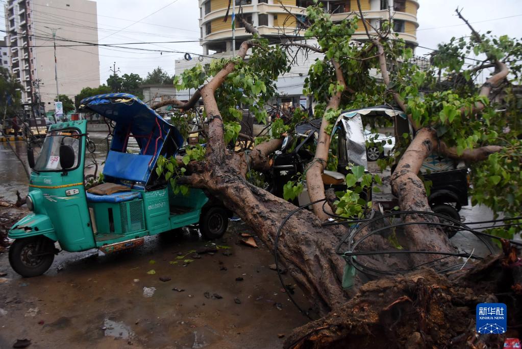 7月25日,在巴基斯坦卡拉奇,倒下的樹(shù)木砸在車上。