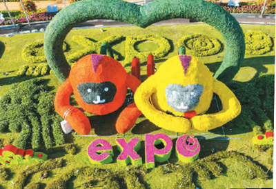 在海南省??谑械暮D蠂?guó)際會(huì)展中心,戶(hù)外巨型吉祥物歡迎八方來(lái)客。張茂攝(人民視覺(jué))