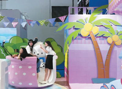 消博會(huì)現(xiàn)場(chǎng),由富源集團(tuán)打造的400平方米的“三亞HelloKitty度假村”里,觀(guān)眾正拍照打卡。