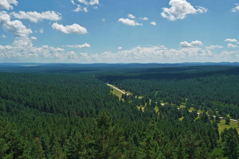 鄂溫克旗地處干旱半干旱地帶,年平均降水量僅為350毫米,歷史上曾因開荒造成森林草原大面積沙化退化。近年來大力開展退耕還林還草,植被逐步恢復(fù)。記者在沿途見到,草原植被蓋度良好。來到紅花爾基林業(yè)局國家樟子松良種基地時,大家更是被浩瀚的樟子松林海所震撼。站在山頂俯瞰,車輛剛剛駛過的公路淹沒在連片的林海中,身邊同行記者說,找到了電腦壁紙的原拍攝點。