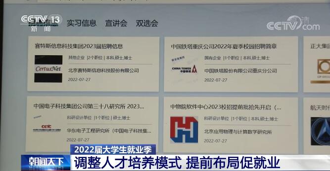 針對離校未就業(yè)學生,北京郵電大學在暑期持續(xù)發(fā)布招聘信息,提供就業(yè)崗位超過2萬個。截至目前,在北京郵電大學2022屆校園招聘中,高新技術產業(yè)和戰(zhàn)略性新興產業(yè)領域企業(yè)占比超過80%,有超過70%的畢業(yè)生圍繞網絡強國建設,在高新技術產業(yè)和戰(zhàn)略性新興產業(yè)領域就業(yè)。(央視網)