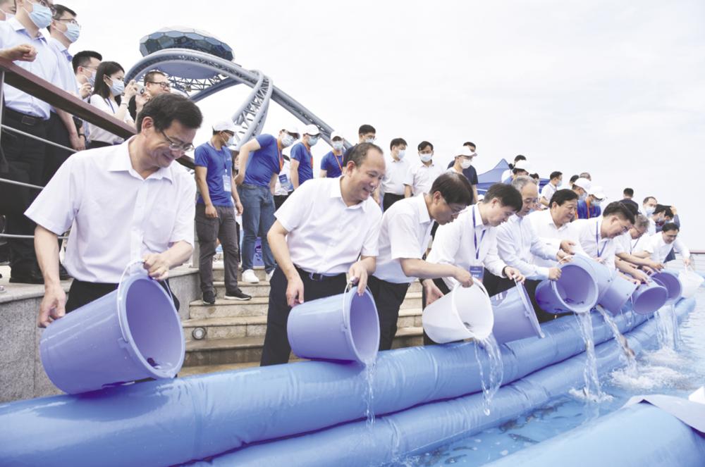 7月29日下午,第四屆中韓聯(lián)合增殖放流活動(dòng)通過線上線下相結(jié)合的方式,在煙臺(tái)和韓國全羅南道木浦市同步舉行,雙方共向黃海放流水生生物苗種超過200萬尾。 YMG全媒體記者 范祖康 秦菲 攝