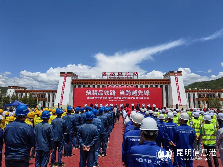 昆明信息港訊 記者上官艷君 為表揚先進,樹立典型,鼓舞士氣,7月29日,云南省“筑精品鐵路 當(dāng)跨越先鋒”勞動競賽2021 年度表揚及 2022 年度啟動活動在滇藏鐵路香格里拉站建設(shè)現(xiàn)場舉行。