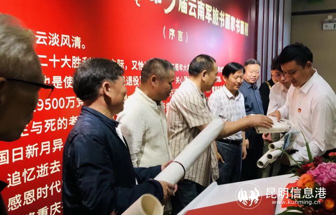 省人大常委會(huì)原常務(wù)副主任晏友瓊,云南省軍區(qū)原司令員黃光漢,云南省武警總隊(duì)原政委王永銀,四川省軍區(qū)原副政委李立中,云南省文聯(lián)黨組書記、主席李勇,昆明市退役軍人事務(wù)局黨組書記、局長(zhǎng)朱偉,著名軍旅書畫家鐘開天等,參加了書畫展開展儀式。