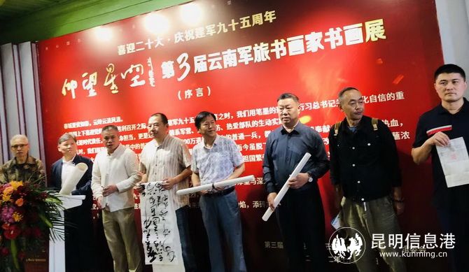 上午9:30,云南地下黨建黨舊址《啟航》巡展在77331部隊(duì)準(zhǔn)時(shí)開展,博物館講解員姚群、王亞南,努力將中共云南地下黨建黨舊址的光榮革命歷史講生動(dòng)、講清楚,收獲了官兵們熱烈的掌聲。上午10:00,“喜迎二十大?慶祝建軍九十五周年第三屆‘仰望星空’云南軍旅書畫家書畫展”在云南陸軍講武堂舊址開展,展覽分為書法、篆刻、國(guó)畫三部分,共70件作品。