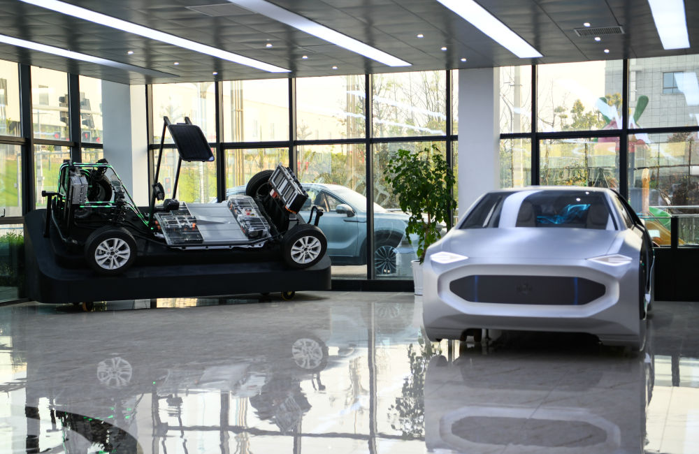 在四川省廣安市鄰水縣川渝高竹新區(qū)一家企業(yè)展廳內(nèi)拍攝的展車(2021年3月24日攝)。新華社記者 王曦 攝