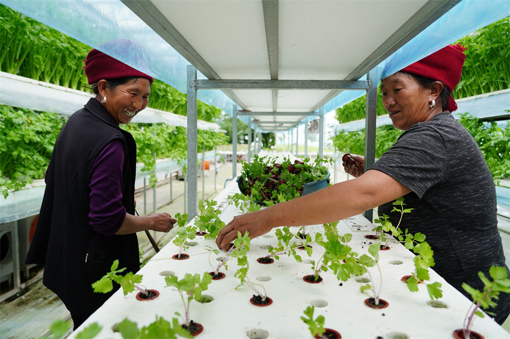 四川省昭覺(jué)縣四開(kāi)鎮(zhèn)好谷村涪昭現(xiàn)代農(nóng)業(yè)產(chǎn)業(yè)園內(nèi),農(nóng)戶在進(jìn)行芹菜苗移栽(2022年6月18日攝)。新華社記者 劉瓊 攝