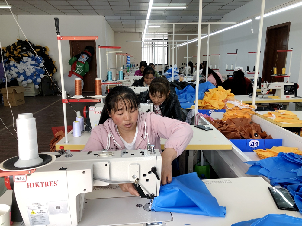 吳大波說:“政府為我們提供了免費的場地,招聘工人后給予免費培訓,目前我們有工人四十余人,加上管理人員有五十余人?!?/p>