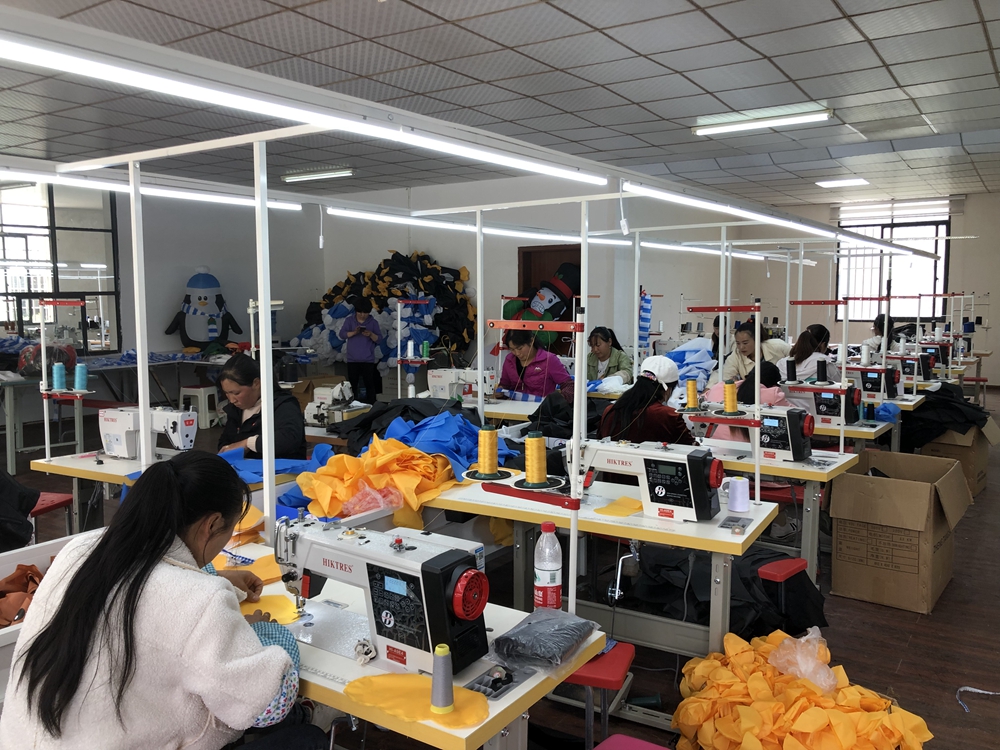 焦明乾說:“這個廠辦起來很好,我現(xiàn)在娃娃也可以帶,錢也可以掙了,也可以給老公減輕壓力,一個月有三千元左右的收入?!?/p>