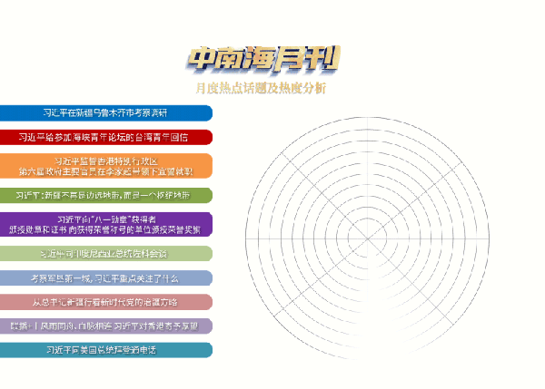 央視網(wǎng)《中南海月刊》運(yùn)用智能大數(shù)據(jù),梳理習(xí)近平總書(shū)記七月重要活動(dòng)與講話(huà),與您一起領(lǐng)悟新時(shí)代新征程上大國(guó)領(lǐng)袖的家國(guó)情懷和擘畫(huà)運(yùn)籌。