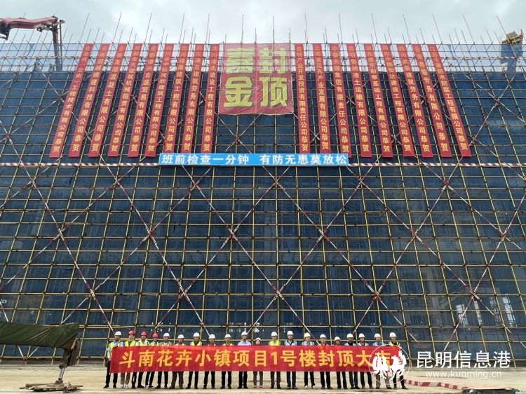昆明信息港訊 記者段佳琪 通訊員趙玉芳 8月1日,在云南省重點(diǎn)工程——昆明斗南花卉小鎮(zhèn)項(xiàng)目施工現(xiàn)場(chǎng),混凝土澆筑、振動(dòng)棒、平板振動(dòng)器等的火熱施工聲此起彼伏,十幾輛混凝土罐車來回穿梭。在工人們長(zhǎng)達(dá)20個(gè)小時(shí)的連續(xù)澆筑作業(yè)后,8月2日凌晨5點(diǎn)30分,該項(xiàng)目終于迎來首棟樓的封頂,為項(xiàng)目年底全面封頂打下堅(jiān)實(shí)基礎(chǔ)。