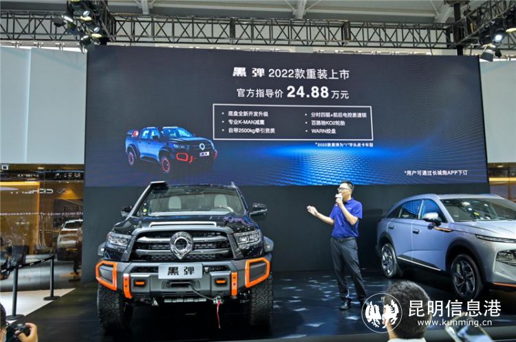 8月4日,第二十三屆中國(guó)(昆明)國(guó)際汽車博覽會(huì)正式開幕。本屆昆明車展,長(zhǎng)城炮攜乘用休閑、時(shí)尚商用兩大品類,2022款黑彈、越野炮拖掛版、金剛炮平底貨箱版三款車型隆重登場(chǎng)。其中,2022款黑彈煥新上市,為1字頭皮卡車型,官方指導(dǎo)價(jià)為24.88萬元。