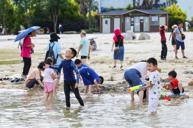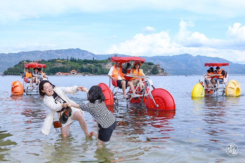 在夏日清涼舒適的微氣候加持下,游客們紛紛來此進(jìn)行濱湖觀光打卡、濕地科普學(xué)習(xí)、戶外休閑放松、攝影寫生留戀……相約家人或是好友來此,或是泛舟湖上、淺灘戲水,或是漫步湖畔、憑欄聽風(fēng),撫仙湖的這一抹清涼的高原藍(lán),撩動(dòng)人們的心弦。