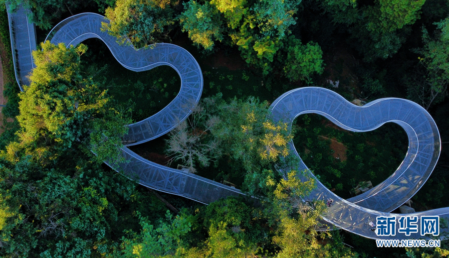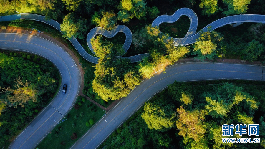 花海、鳥語、湖泊、山林……春城昆明的浪漫遠不止于此。近來,昆明又多了一個“打卡地”——世博綠道。從航拍圖看這條綠道,“雙心”棧橋盤在綠蔭中,讓到這里的市民、游客連散步都是“愛你的形狀”。