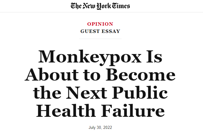 《紐約時報(bào)》刊載斯科特·戈特利布專欄文章《猴痘疫情將成為美國公共衛(wèi)生領(lǐng)域的下一場失敗》