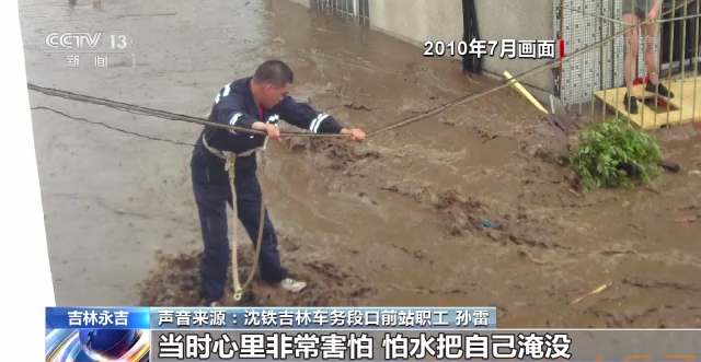 沈鐵吉林車務(wù)段口前站職工 孫雷:眼瞅著水一點(diǎn)一點(diǎn)增高,到最高的3.36米只用了4個(gè)小時(shí)左右。