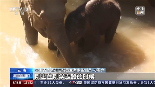 云南省普洱市江城縣亞洲象監(jiān)測(cè)員刁發(fā)興:有的時(shí)候你看它(小象)剛出生剛學(xué)走路的時(shí)候,特別有的時(shí)候過(guò)溝或者上陡坡的時(shí)候,大象媽媽會(huì)用鼻子慢慢地屁股上趕著走、抬著走,所以說(shuō)感覺(jué)到挺可愛(ài)的。