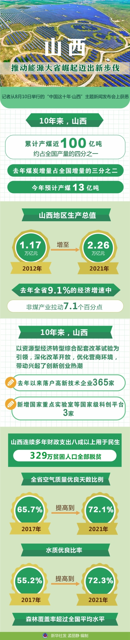 發(fā)布會(huì)上,山西省省長(zhǎng)藍(lán)佛安說(shuō),山西民生建設(shè)、生態(tài)環(huán)境都有了長(zhǎng)足的進(jìn)步。山西連續(xù)多年財(cái)政支出八成以上用于民生,329萬(wàn)貧困人口全部脫貧。從2017年到2021年,全省空氣質(zhì)量?jī)?yōu)良天數(shù)比例由65.7%提高到72.1%,水質(zhì)優(yōu)良比率由55.2%提高到72.3%,森林覆蓋率超過(guò)全國(guó)平均水平。(記者梁曉飛)