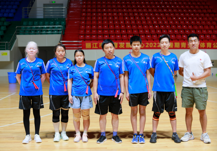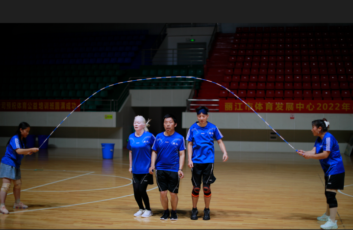他們手持跳繩隨著節(jié)奏跳動,雙腳并攏跳、左右腿單腳跳、交叉繩子跳……8月9日,在麗江市體育中心籃球館內(nèi),備戰(zhàn)云南省第十二屆殘疾人運動會跳繩比賽的麗江盲人跳繩隊隊員正在緊張訓(xùn)練中。