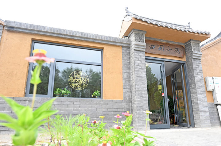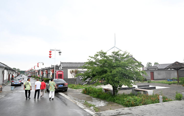 從橋上下來(lái),沿潮白河左堤路向西北前行,約莫6公里后駛?cè)氩砜?,穿過(guò)“九河漕運(yùn)”的牌坊,眼前稻田環(huán)繞、荷花滿塘,耳邊蟬鳴聲不斷。不遠(yuǎn)處,大紅燈籠點(diǎn)綴著一排排青磚灰瓦的農(nóng)家院。三三兩兩的游客,或漫步賞景,或拍照留念。
