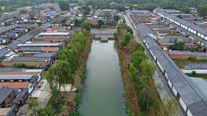 這是位于天津市寶坻區(qū)黃莊鎮(zhèn)小辛碼頭村的古碼頭遺址(無(wú)人機(jī)照片,6月29日攝)