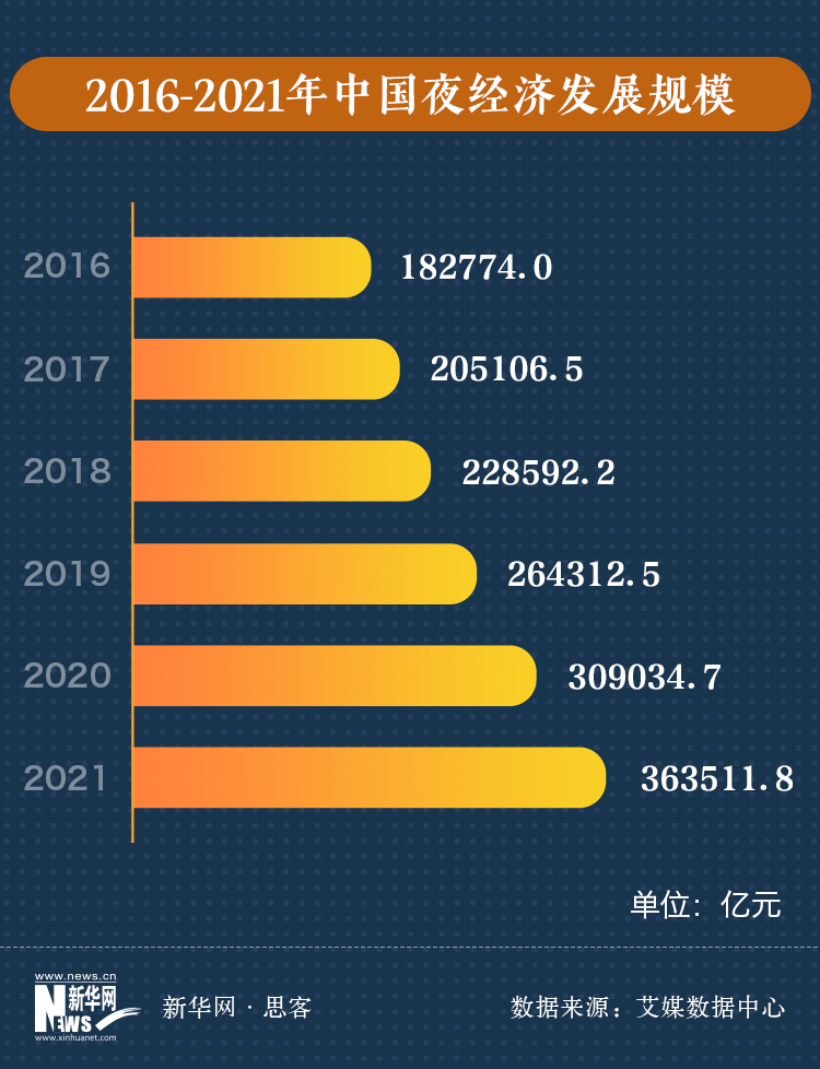 中國(guó)的“夜經(jīng)濟(jì)”規(guī)模有多大?根據(jù)商務(wù)部城市居民消費(fèi)習(xí)慣調(diào)查報(bào)告顯示,夜間時(shí)段已經(jīng)承擔(dān)起國(guó)內(nèi)整個(gè)居民消費(fèi)的60%。艾媒咨詢(xún)的調(diào)查數(shù)據(jù)顯示,自2016年以來(lái),中國(guó)的“夜經(jīng)濟(jì)”規(guī)??焖僭鲩L(zhǎng)。到2021年,總規(guī)模已達(dá)到36.35萬(wàn)億元,艾媒咨詢(xún)測(cè)算,2022年“夜經(jīng)濟(jì)”增速將持續(xù)增加,有望突破40萬(wàn)億元。