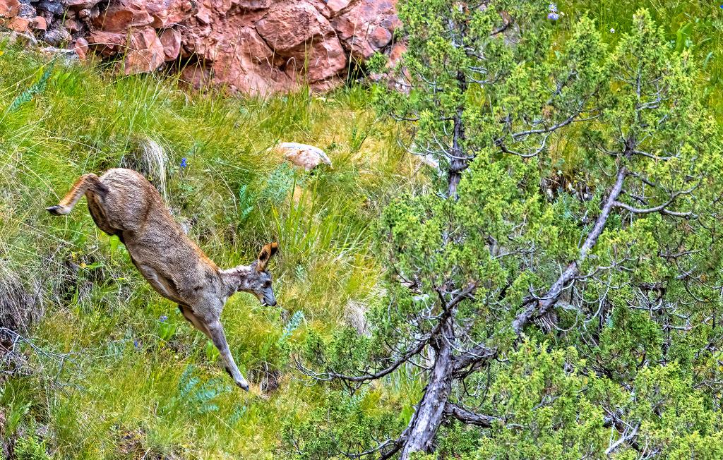 這是在昂賽大峽谷內(nèi)拍攝的馬麝(8月6日攝)。(新華社發(fā) 張戈攝)