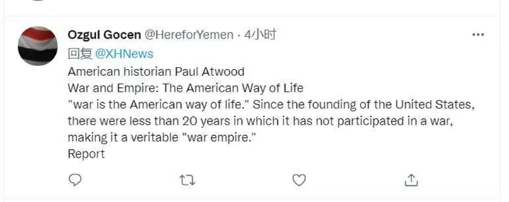 新華社發(fā)布的阿語版報(bào)告引發(fā)很多網(wǎng)友共鳴: