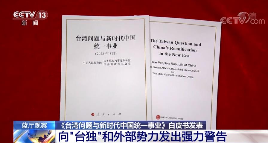 國務(wù)院臺灣事務(wù)辦公室、國務(wù)院新聞辦公室本周發(fā)表《臺灣問題與新時代中國統(tǒng)一事業(yè)》白皮書。這是中國政府繼1993年和2000年之后,就臺灣問題發(fā)表的第三份白皮書,當然也是特殊時間節(jié)點下出臺的一份歷史性文件。這份白皮書究竟向外界傳遞了哪些重要信息?面對新形勢,大陸對臺政策是否有所調(diào)整?來看本周的《藍廳觀察》。