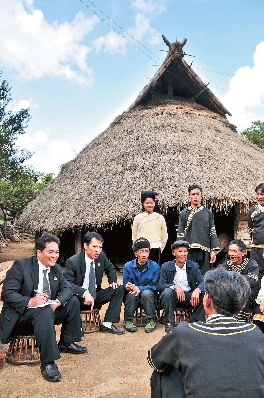 眼看事態(tài)就要惡化,鮑衛(wèi)忠一馬當先沖到艾嘎身前,用佤語大聲說道:“放下刀子!你想干什么?‘各族人民一家親,九老九代不丟伴’,這是我們佤族世代相傳的祖訓,難道你忘記了嗎?”義正辭嚴的質問,讓艾嘎羞愧地低下了頭。鮑衛(wèi)忠不忘安撫群眾:“請大家相信法院,這個案子我們一定會公平公正地處理好?!?/p>