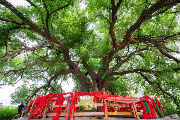 “玉皇輦種植于金代,樹高26.9米,相當(dāng)于9層樓那么高。它的樹冠南北長(zhǎng)26米,東西長(zhǎng)28.7米,如果樹冠全部展開的話,它的遮蔭面積能夠達(dá)到746.2平方米,相當(dāng)于兩個(gè)籃球場(chǎng)那么大……”和平鄉(xiāng)駐村干部韓桂平講解說(shuō),從樹的東面看,遒勁的枝條像皇帝的龍輦寶座;從樹的西面看,龍的形狀特別明顯,冬季細(xì)觀察樹形,能看出十二生肖的動(dòng)物造型,非常奇特。