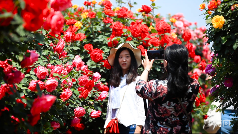 游客在月季博覽園打卡拍照(央廣網(wǎng)發(fā) 劉猛猛 攝)