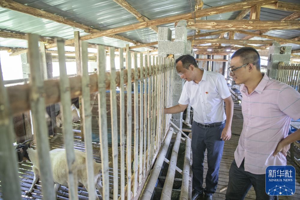 8月11日,在重慶市巫溪縣田壩鎮(zhèn)雙箭村,駐村第一書記廖正步(左)和駐村隊員在查看牲畜養(yǎng)殖情況。新華社記者 黃偉 攝