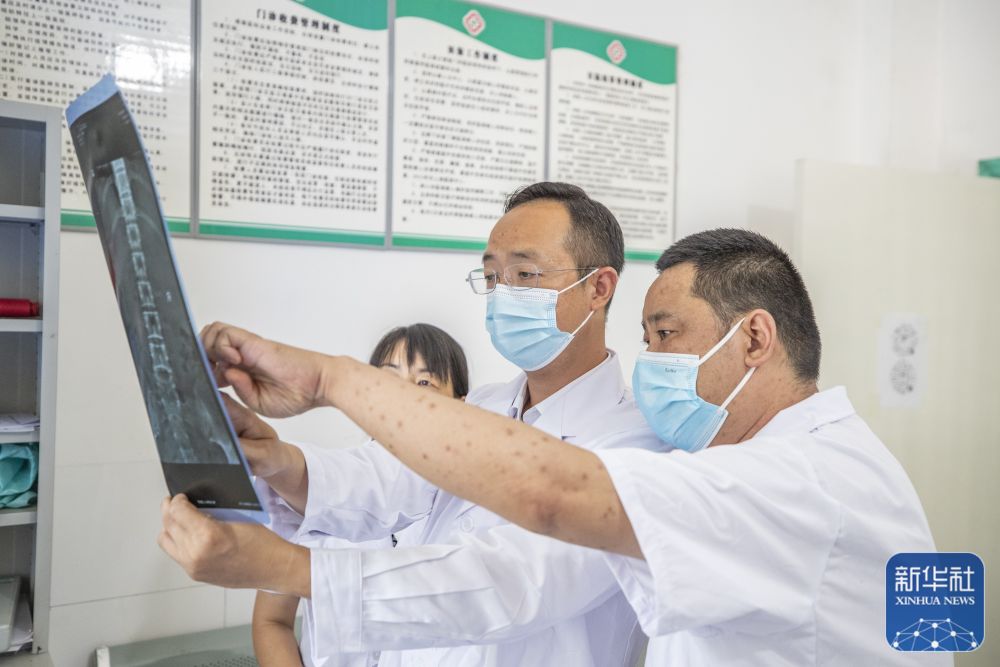 8月11日,在重慶市巫溪縣田壩鎮(zhèn)衛(wèi)生院,田壩鎮(zhèn)雙箭村駐村第一書記廖正步(中)與衛(wèi)生院醫(yī)生一起進(jìn)行病情分析。新華社記者 黃偉 攝