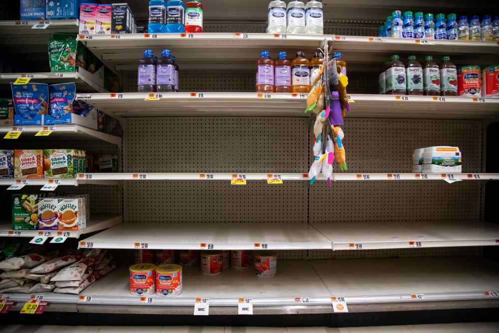 5月24日,在美國紐約市布魯克林區(qū),一家超市的嬰幼兒奶粉貨架出現(xiàn)缺貨。(新華社發(fā),郭克攝)