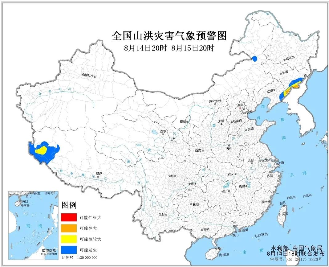 水利部和中國氣象局8月14日18時聯(lián)合發(fā)布橙色山洪災(zāi)害氣象預(yù)警:預(yù)計,8月14日20時至8月15日20時,遼寧東部、吉林南部、西藏西部等地部分地區(qū)發(fā)生山洪災(zāi)害可能性較大(黃色預(yù)警),其中,遼寧東部、吉林南部局地發(fā)生山洪災(zāi)害可能性大(橙色預(yù)警)。其他地區(qū)也可能因局地短歷時強降水引發(fā)山洪災(zāi)害,請各地注意做好實時監(jiān)測、防汛預(yù)警和轉(zhuǎn)移避險等防范工作。